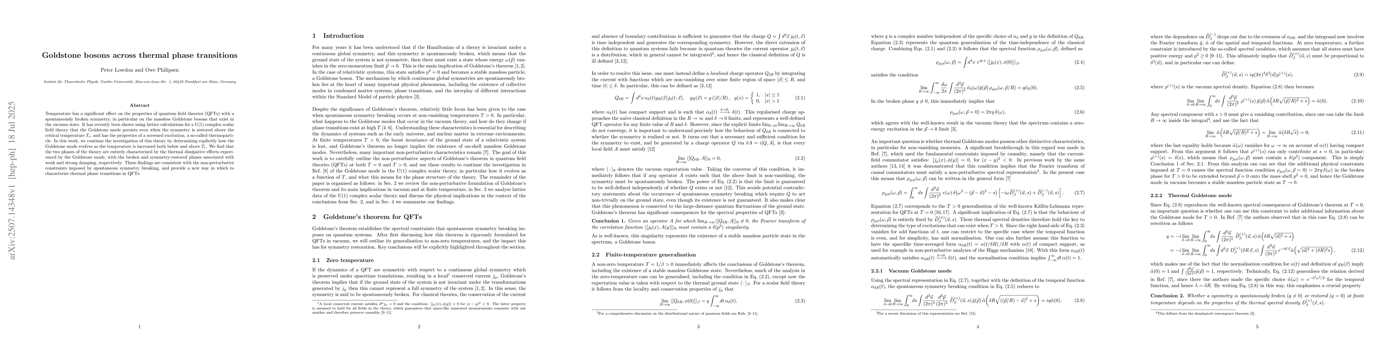 Understanding the behavior of thermal Goldstone bosons is crucial for understanding phase transitions and quasi-particle excitations in condensed matter systems