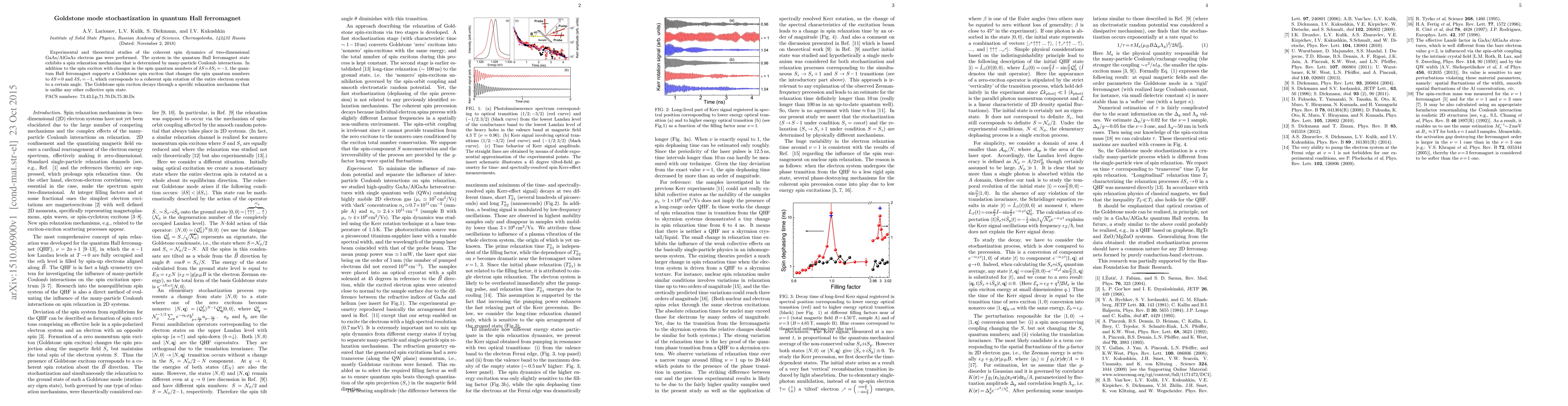 This paper investigates the quantum Hall ferromagnet state in GaAs/AlGaAs electron gas, revealing a unique Goldstone spin exciton that induces coherent spin rotation without altering spin quantum numbers. This distinct spin relaxation mechanism highlights a novel decay process distinct from other collective spin states.