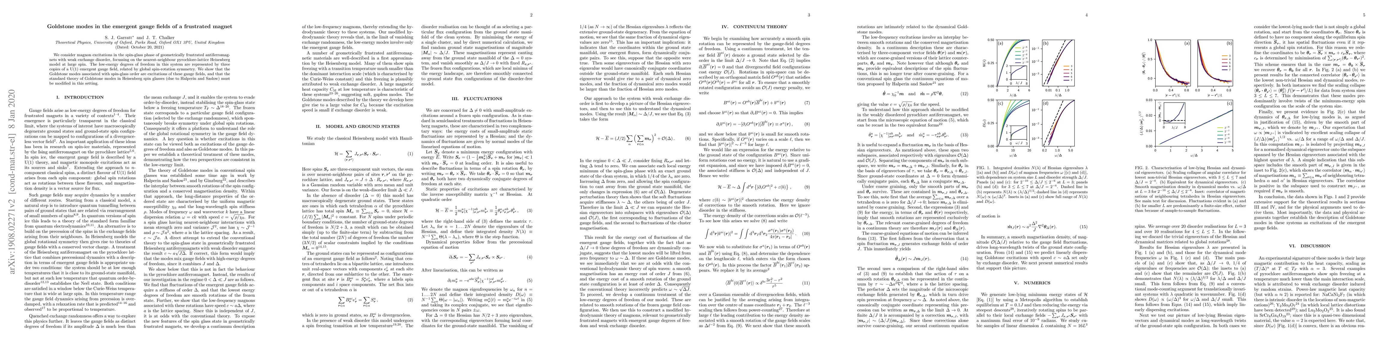 This paper investigates magnon excitations in spin-glass phases of frustrated antiferromagnets, particularly focusing on the pyrochlore-lattice Heisenberg model. It reveals that the Goldstone modes linked to spin-glass order emerge from three U(1) emergent gauge fields, necessitating a modification of the conventional Goldstone theory in this context.
