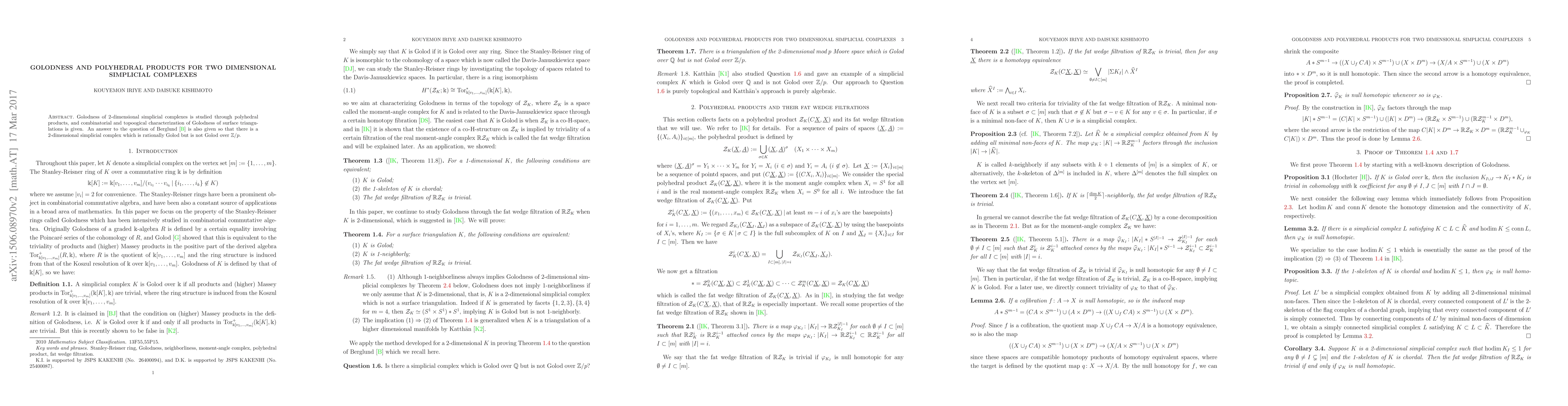 This paper investigates the Golodness of 2-dimensional simplicial complexes via polyhedral products, providing combinatorial and topological criteria for Golodness in surface triangulations. It also resolves Berglund's question by demonstrating a 2-dimensional simplicial complex that is rationally Golod but not Golod over $\mathbb{Z}/p$.