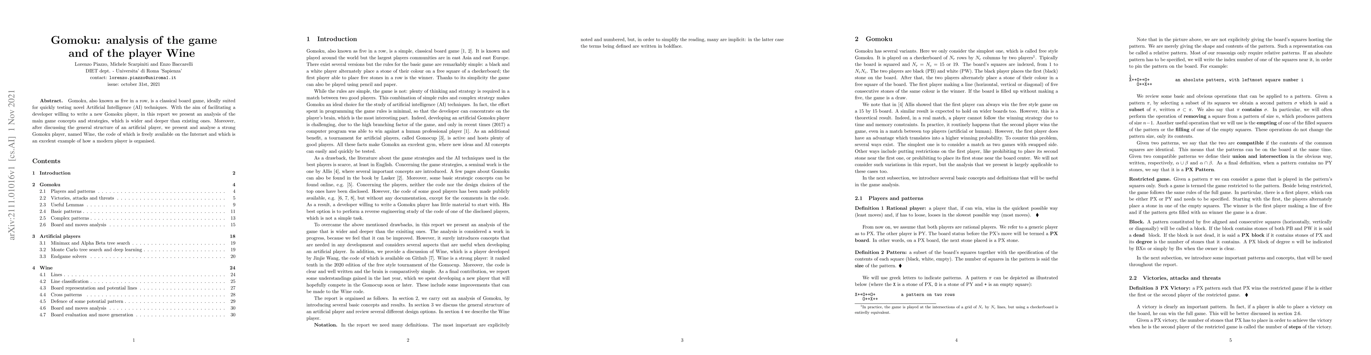 This paper provides an extensive analysis of the Gomoku game, detailing its strategies and concepts, and introduces Wine, a robust AI player exemplifying modern Gomoku programming, with its code available for public use.