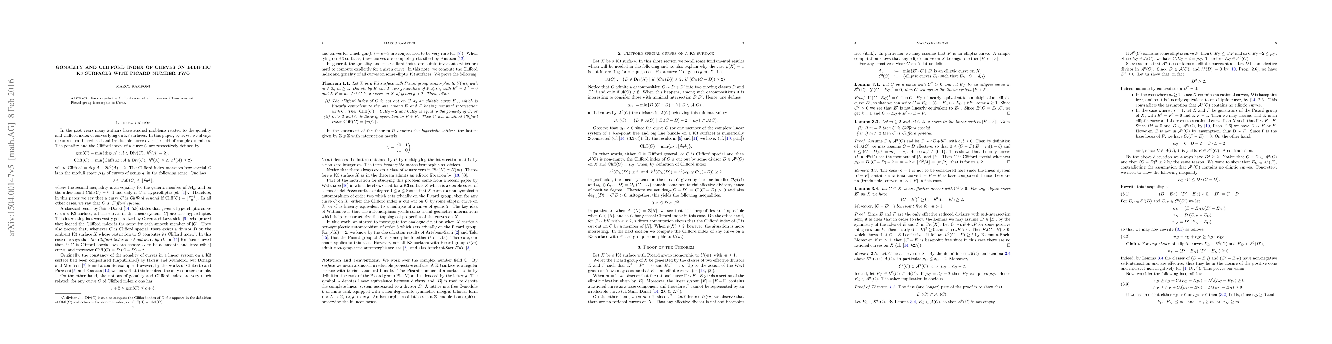 We compute the Clifford index of all curves on a K3 surface with Picard group isomorphic to U(m).