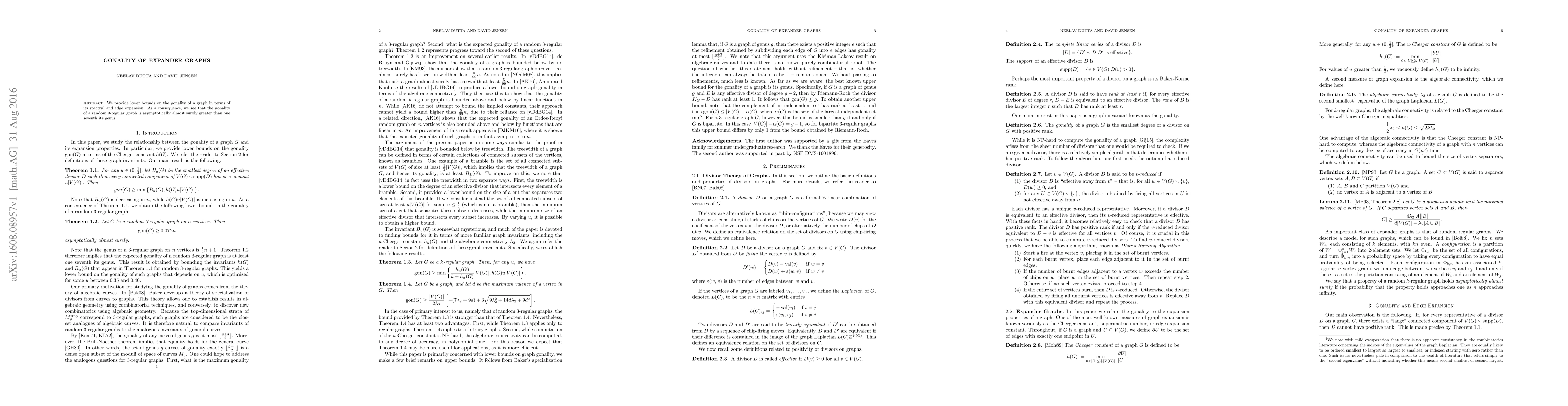 Summary: The research establishes lower bounds for a graph's gonality based on its spectral and edge expansion properties, demonstrating that a random 3-regular graph's gonality is typically significantly greater than one seventh of its genus.