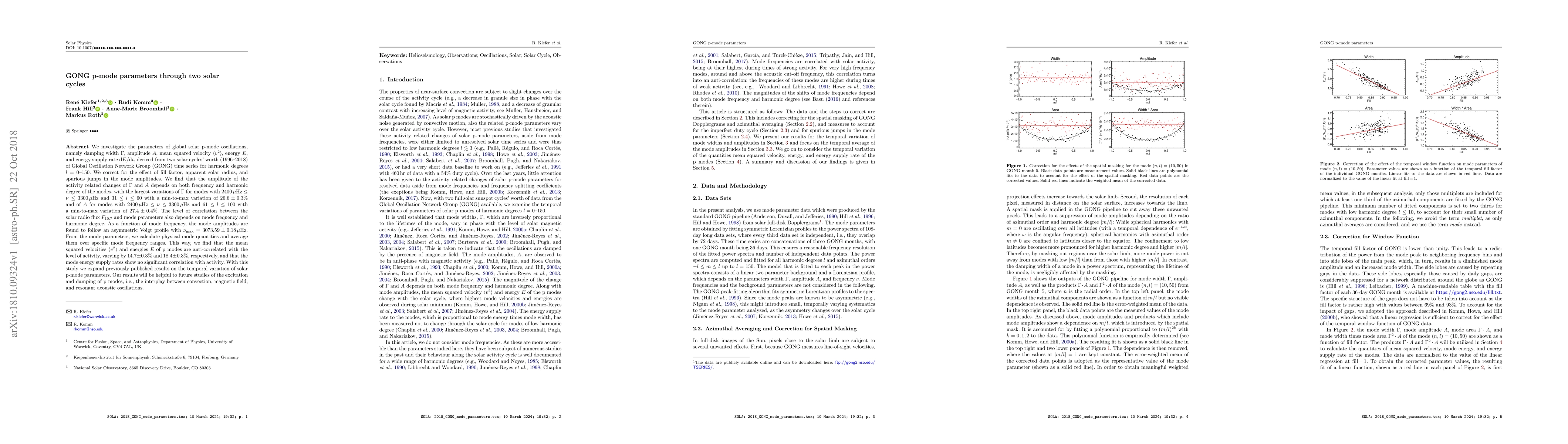 This study analyzes solar p-mode oscillation parameters from two solar cycles (1996-2018) using GONG data, finding significant variations in damping width and amplitude correlated with solar activity. The mean squared velocities and energies of p modes are anti-correlated with activity levels, while energy supply rates show no significant correlation.