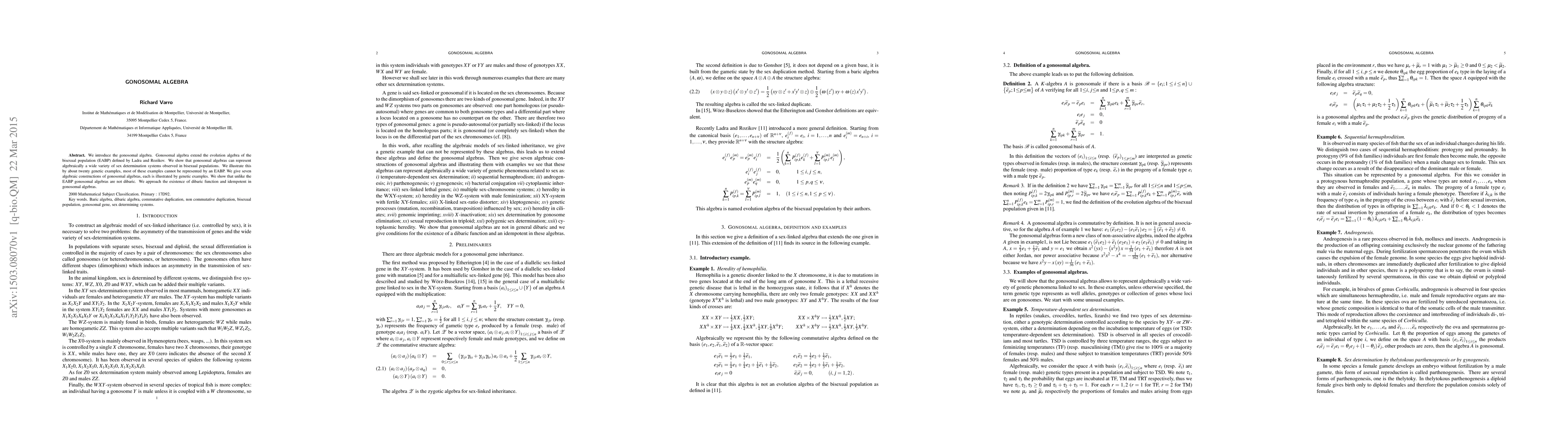 Gonosomal algebra extends the evolution algebra of bisexual populations, offering a broader framework to represent diverse sex determination systems through seven distinct algebraic constructions. Unlike the evolution algebra, gonosomal algebras lack dibaric properties and are illustrated with genetic examples that cannot be represented by the earlier model.