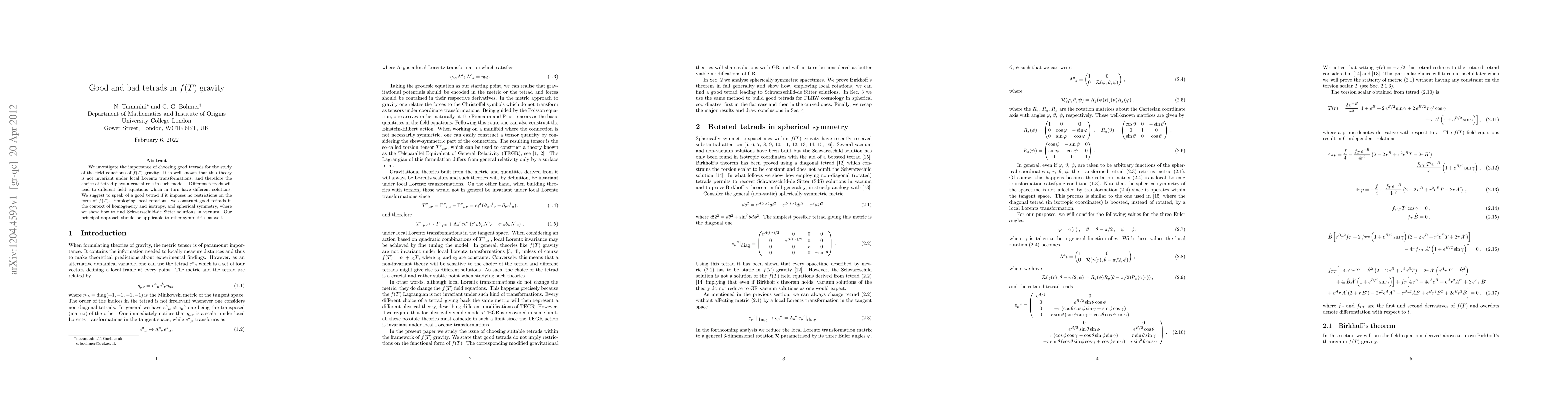 The paper introduces the notion of 'good tetrads' and demonstrates their utility in f(T) gravity, proving Birkhoff’s theorem and identifying SdS solutions as unique vacuum solutions.