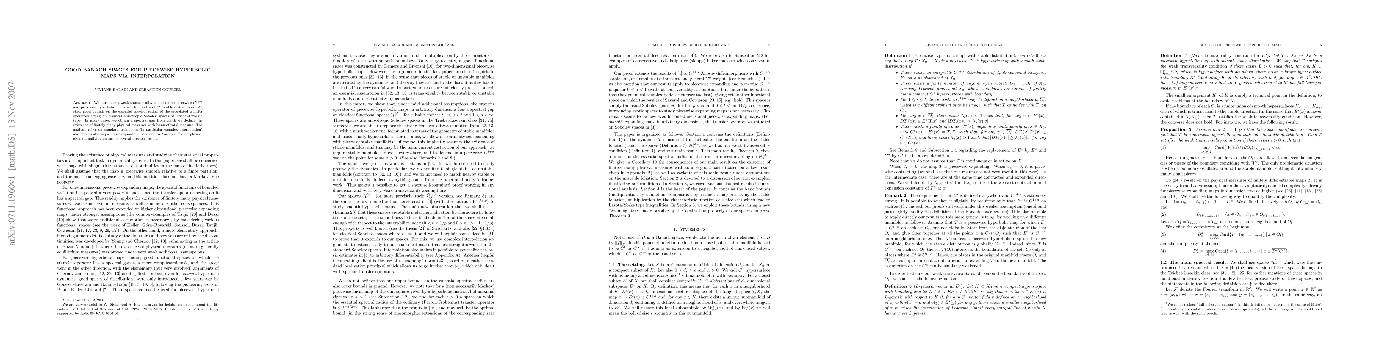 We introduce a weak transversality condition for piecewise C^{1+\alpha} and piecewise hyperbolic maps which admit a C^{1+\alpha} stable distribution. We show good bounds on the essential spectral radius of the associated transfer operators acting on classical anisotropic Sobolev spaces of Triebel-Lizorkin type. In many cases, we obtain a spectral gap from which we deduce the existence of finitely many physical measures with basin of total measure. The analysis relies on standard techniques (in particular complex interpolation) and applies also to piecewise expanding maps and to Anosov diffeomorphisms, giving a unifying picture of several previous results.