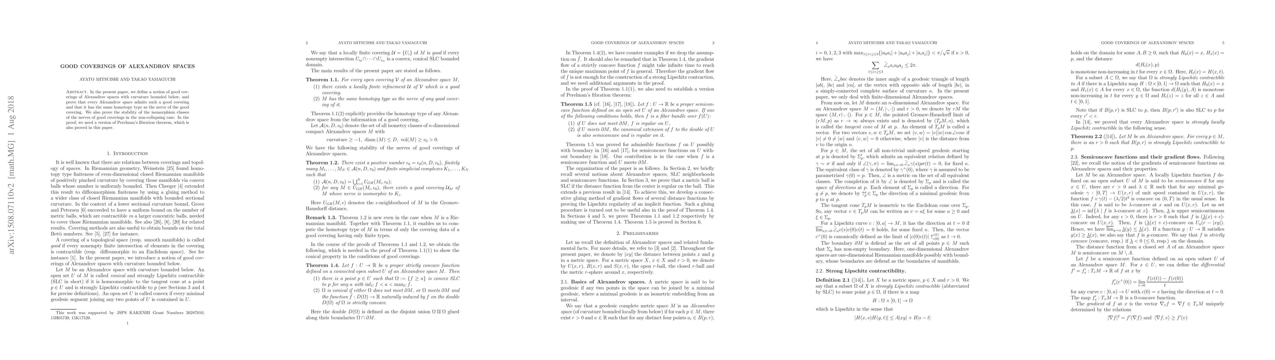 This paper introduces the concept of good coverings for Alexandrov spaces with non-negative curvature, demonstrating that such coverings exist and have the same homotopy type as the nerve of the covering. It also proves the stability of these coverings' isomorphism classes under non-collapsing conditions, utilizing a version of Perelman's fibration theorem.