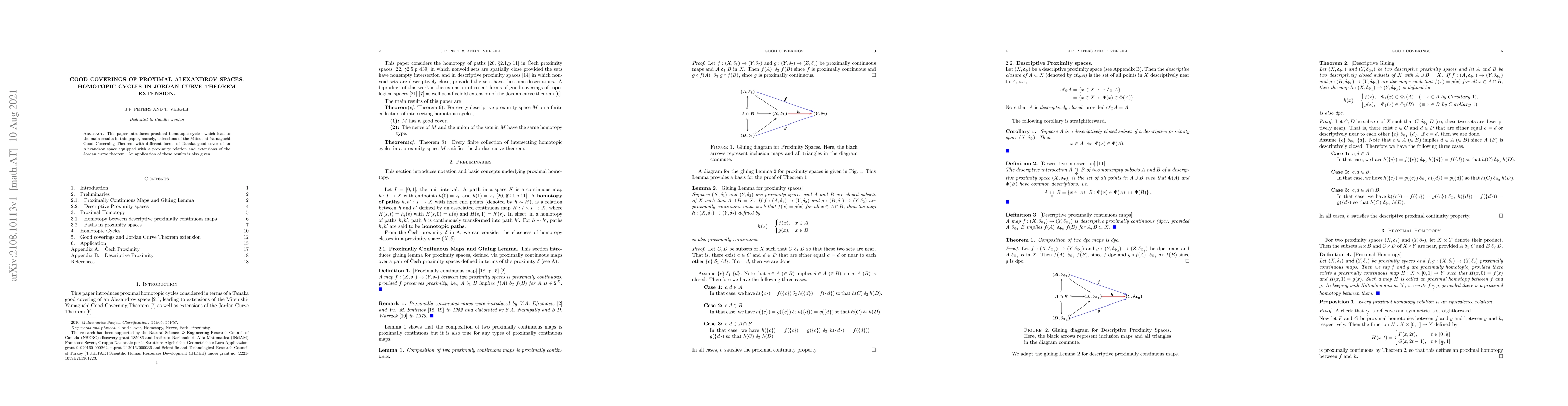 This paper introduces proximal homotopic cycles, which lead to the main results in this paper, namely, extensions of the Mitsuishi-Yamaguchi Good Coverning Theorem with different forms of Tanaka good cover of an Alexandrov space equipped with a proximity relation and extensions of the Jordan curve theorem. An application of these results is also given.