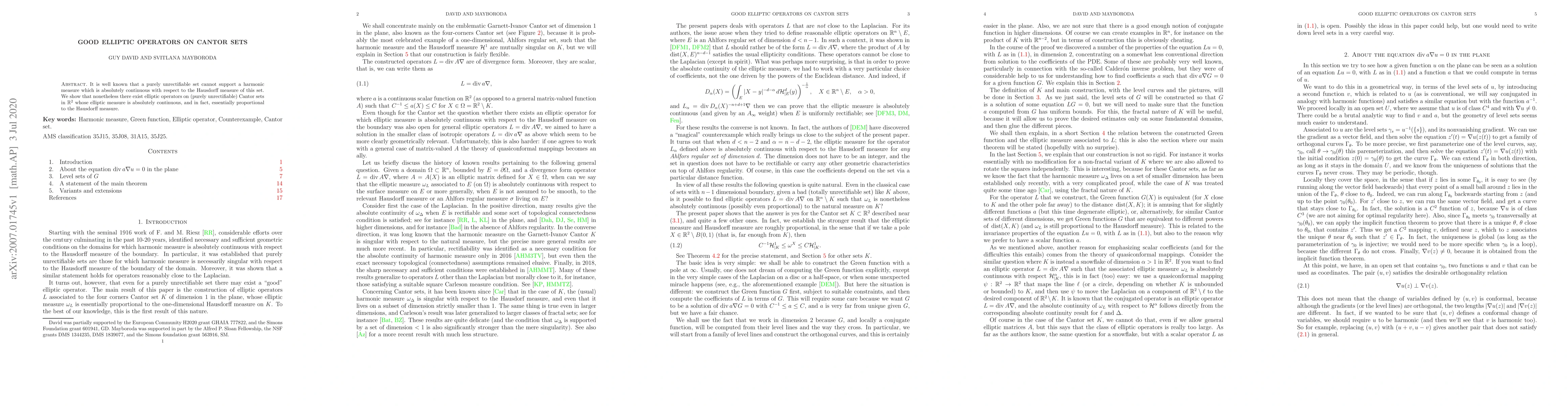 Researchers found that elliptic operators on Cantor sets in 2D space can have absolutely continuous measures proportional to the Hausdorff measure of the set.