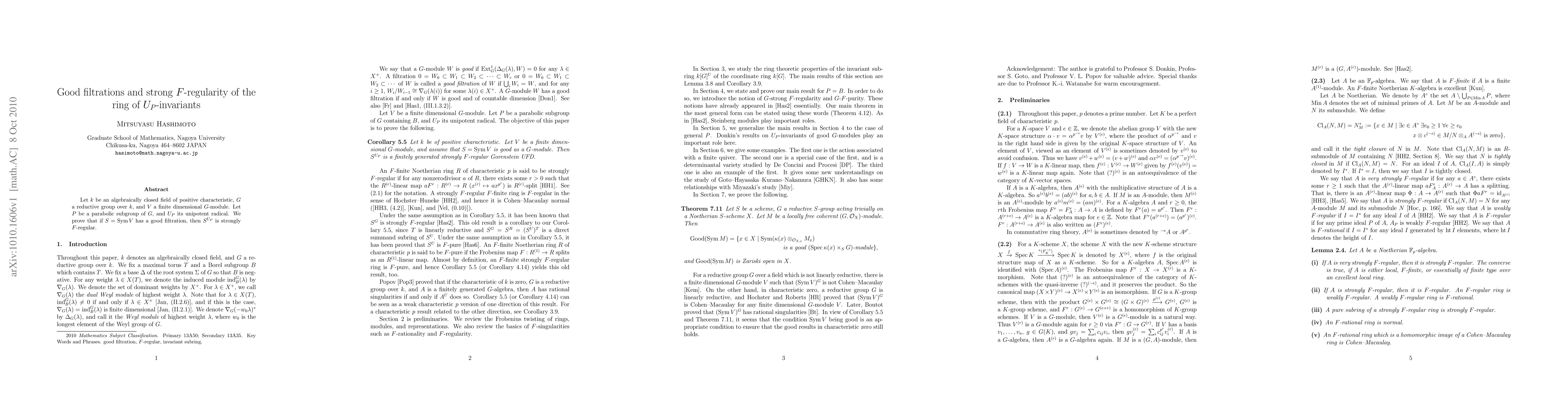 Let $k$ be an algebraically closed field of positive characteristic, $G$ a reductive group over $k$, and $V$ a finite dimensional $G$-module. Let $P$ be a parabolic subgroup of $G$, and $U_P$ its unipotent radical. We prove that if $S$=\textyen $Sym V$ has a good filtration, then the ring of invariants $S^{U_P}$ is strongly $F$-regular.