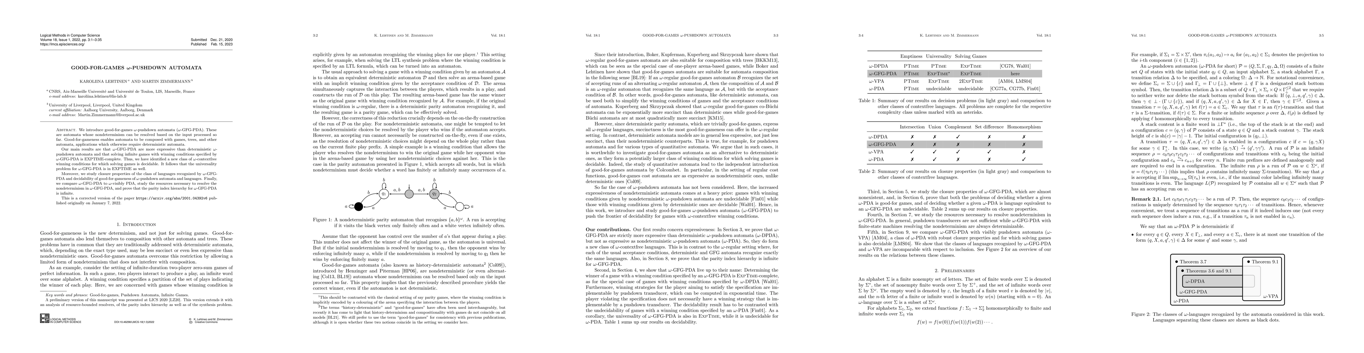 The paper introduces good-for-games $\omega$-pushdown automata ($\omega$-GFG-PDA), which can resolve nondeterminism based on processed input, enabling composition with games and automata. The main results show that $\omega$-GFG-PDA are more expressive than deterministic $\omega$-pushdown automata and solving games with $\omega$-GFG-PDA winning conditions is EXPTIME-complete.