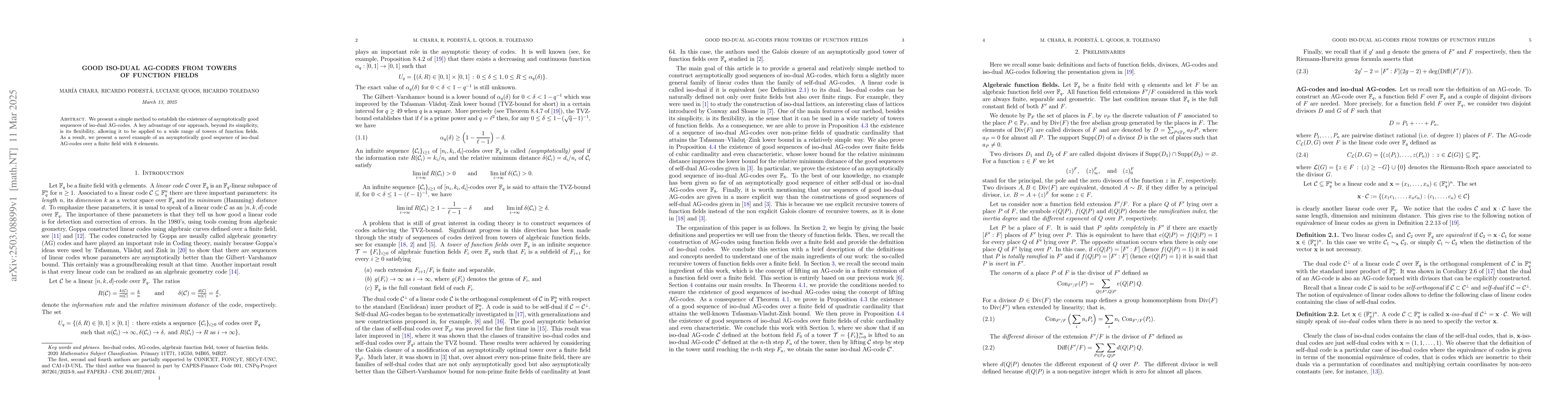The paper introduces a straightforward method for constructing asymptotically good iso-dual AG-codes from towers of function fields, ensuring flexibility and broad applicability.