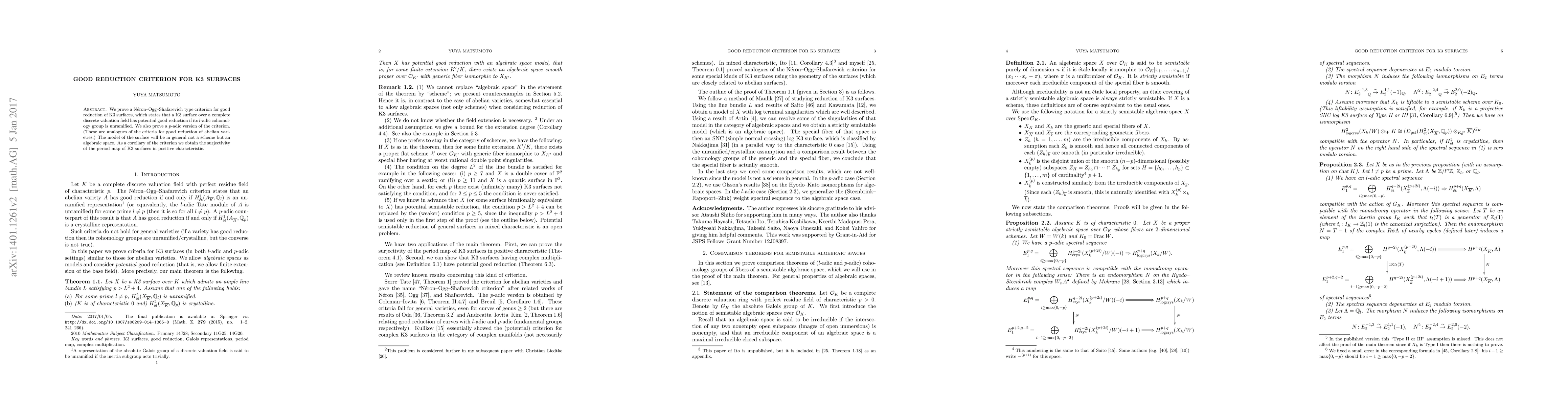 This paper establishes a Neron--Ogg--Shafarevich criterion for K3 surfaces, showing that unramified $l$-adic cohomology implies potential good reduction. It also proves a $p$-adic version and uses the criterion to demonstrate the surjectivity of the period map for K3 surfaces in positive characteristic.