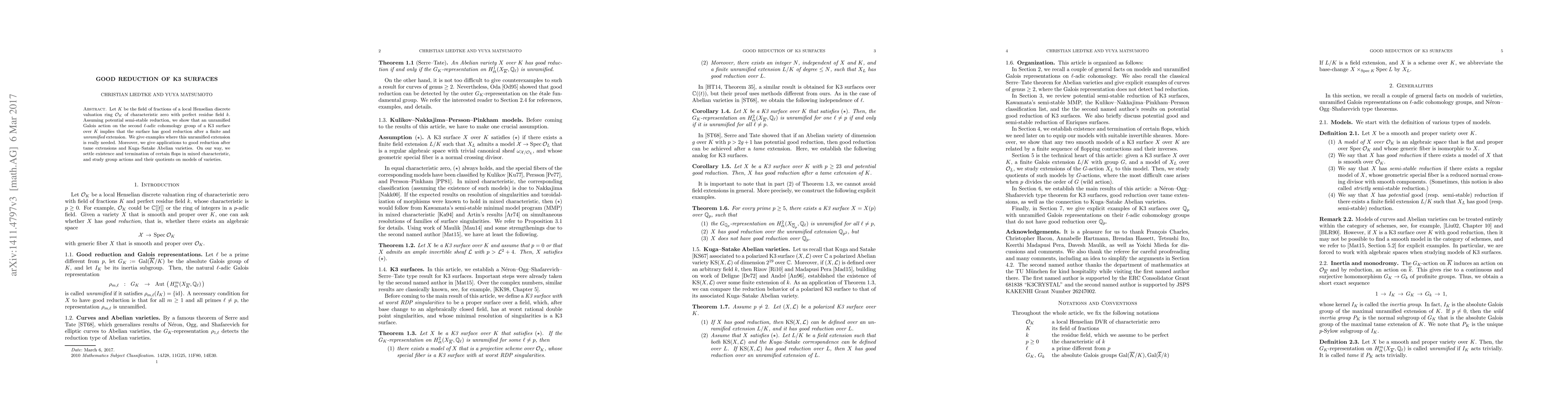 Let $K$ be the field of fractions of a local Henselian DVR with perfect residue field. Assuming potential semi-stable reduction, we show that an unramified Galois-action on second $\ell$-adic cohomology of a K3 surface over $K$ implies that the surface has good reduction after a finite and unramified extension. We give examples where this unramified extension is really needed. Moreover, we give applications to good reduction after tame extensions and Kuga-Satake Abelian varieties. On our way, we settle existence and termination of certain semi-stable flops in mixed characteristic, and study group actions and their quotients on models of varieties.