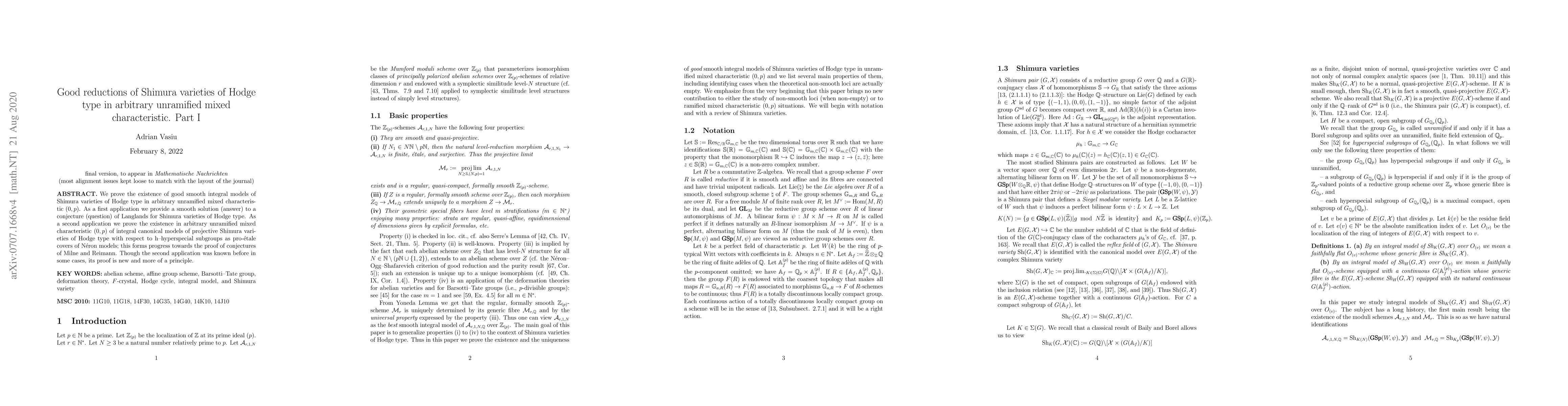 We prove the existence of good smooth integral models of Shimura varieties of Hodge type in arbitrary unramified mixed characteristic $(0,p)$. As a first application we provide a smooth solution (answer) to a conjecture (question) of Langlands for Shimura varieties of Hodge type. As a second application we prove the existence in arbitrary unramified mixed characteristic $(0,p)$ of integral canonical models of projective Shimura varieties of Hodge type with respect to h--hyperspecial subgroups as pro-\'etale covers of N\'eron models; this forms progress towards the proof of conjectures of Milne and Reimann. Though the second application was known before in some cases, its proof is new and more of a principle.