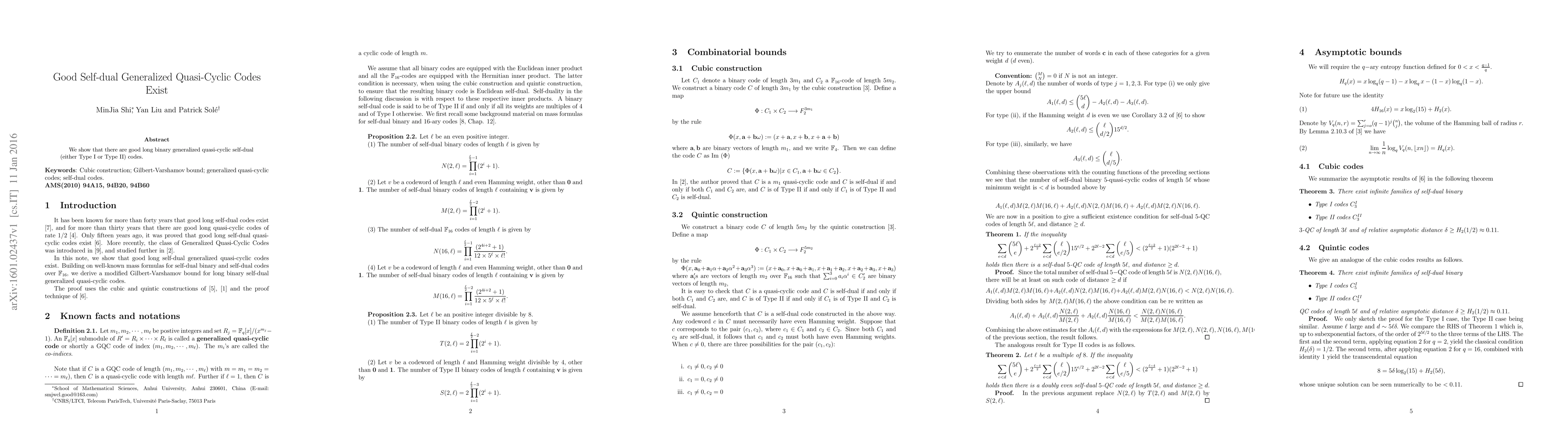 Summary: This research demonstrates the existence of high-quality long binary generalized quasi-cyclic self-dual codes, specifically Type I or Type II, enhancing coding theory applications.