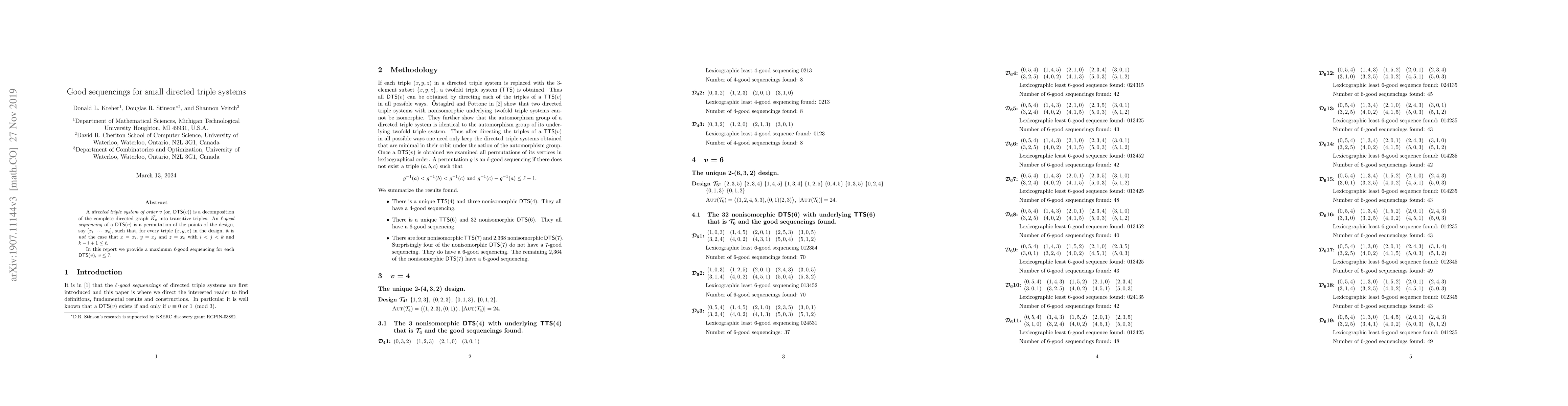 Researchers found a maximum sequencing for each DTS(v) with v ≤ 7, providing a solution to good sequencings in small directed triple systems, improving understanding of design decomposition.