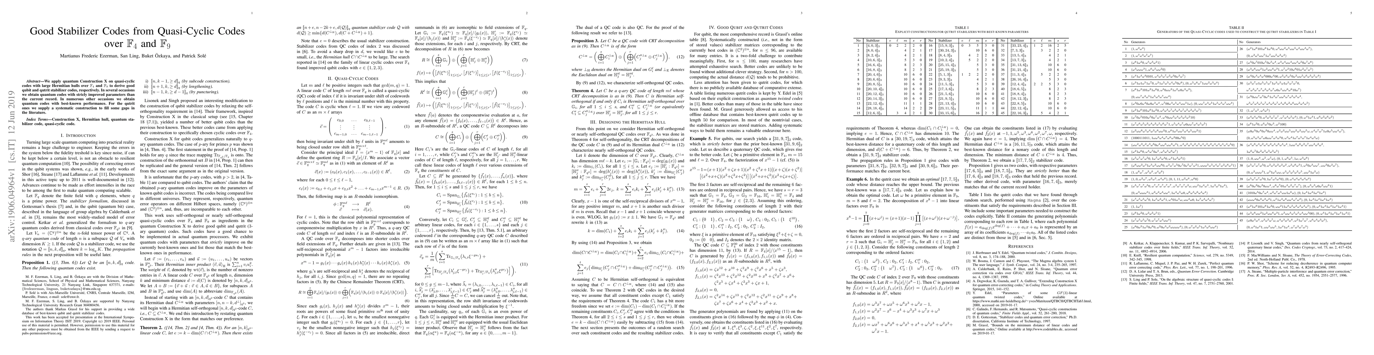Researchers created new quantum stabilizer codes from quasi-cyclic codes over F_4 and F_9 using Construction X, achieving improved parameters in some cases and matching the best-known performance in others.