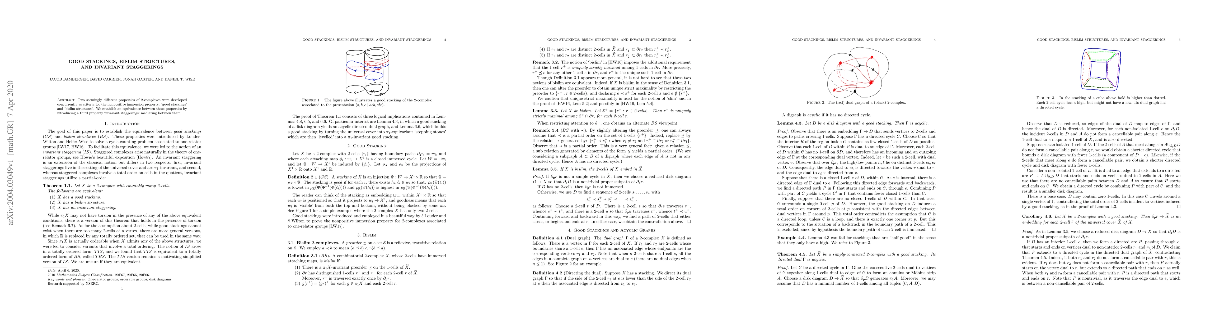 This paper establishes an equivalence between two properties of 2-complexes—"good stackings” and “bislim structures”—by introducing a third property, “invariant staggerings,” which serves as a mediator between the two. The research aims to clarify the criteria for the nonpositive immersion property in 2-complexes.