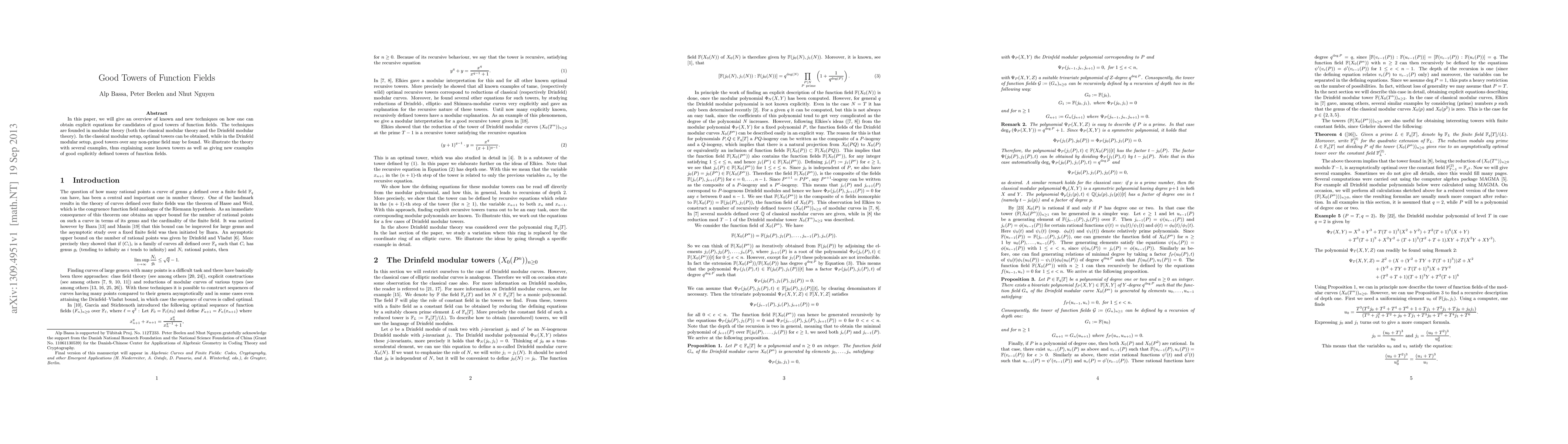 This paper reviews techniques for constructing explicit equations for good towers of function fields, utilizing classical and Drinfeld modular theory. It demonstrates optimal towers in classical setups and finds good towers over non-prime fields in the Drinfeld modular framework, supplemented with illustrative examples.