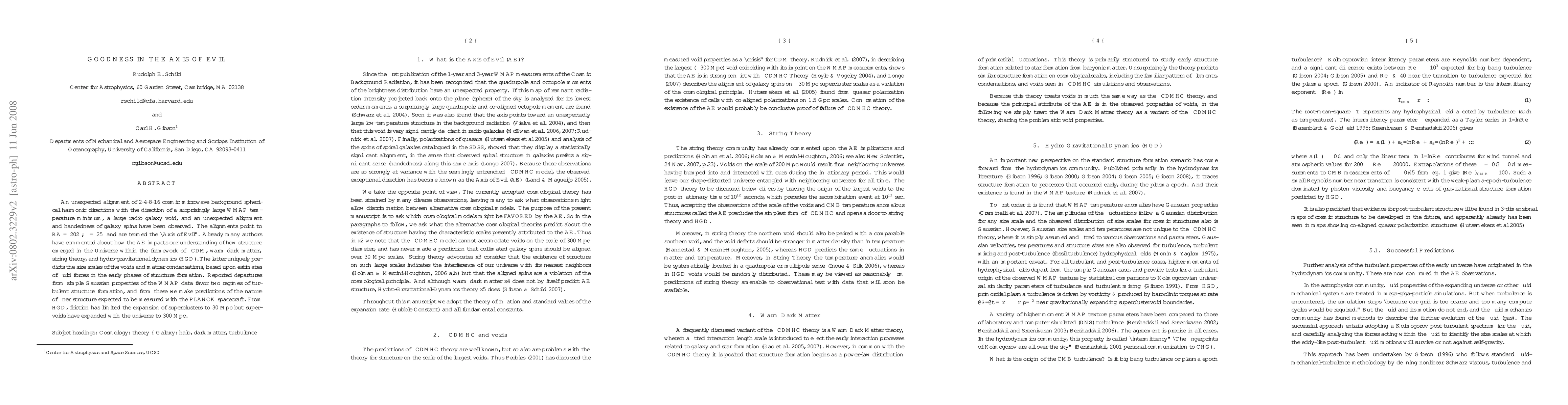An unexpected alignment of 2-4-8-16 cosmic microwave background spherical harmonic directions with the direction of a surprisingly large WMAP temperature minimum, a large radio galaxy void, and an unexpected alignment and handedness of galaxy spins have been observed. The alignments point to RA=202 degrees, delta = 25 degrees and are termed the ``Axis of Evil''. Already many authors have commented about how the AE impacts our understanding of how structure emerged in the Universe within the framework of Lamda-CDM, warm dark matter, string theory, and hydro-gravitational dynamics (HGD). The latter uniquely predicts the size scales of the voids and matter condensations, based upon estimates of fluid forces in the early phases of structure formation. Reported departures from simple Gaussian properties of the WMAP data favor two regimes of turbulent structure formation, and from these we make predictions of the nature of finer structure expected to be measured with the PLANCK spacecraft. From HGD, friction has limited the expansion of superclusters to 30 Mpc but supervoids have expanded with the universe to 300 Mpc.