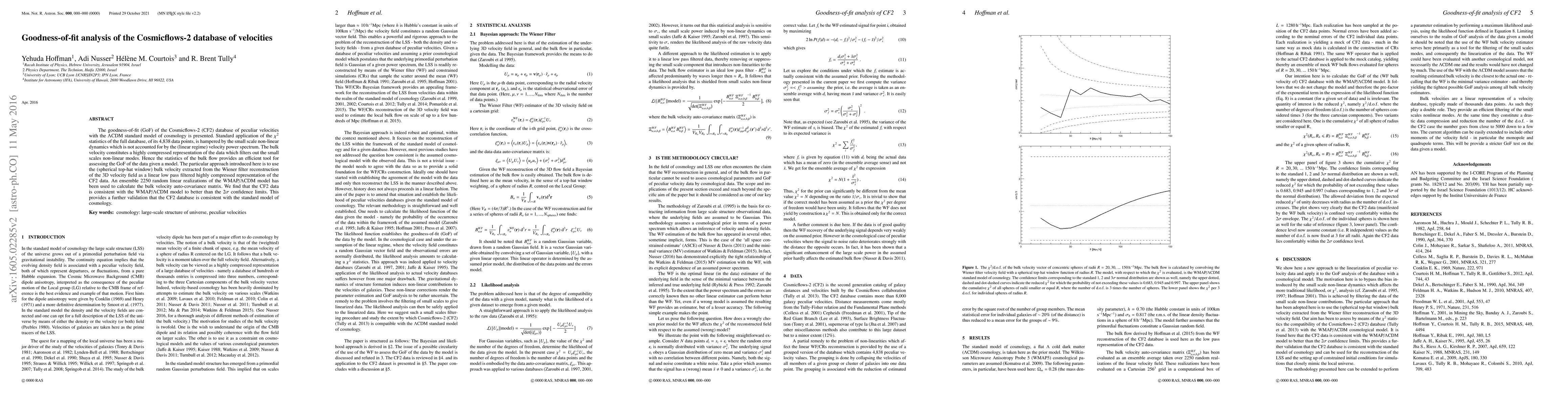The goodness-of-fit (GoF) of the Cosmicflows-2 (CF2) database of peculiar velocities with the LCDM standard model of cosmology is presented. Standard application of the Chi^2 statistics of the full database, of its 4,838 data points, is hampered by the small scale nonlinear dynamics which is not accounted for by the (linear regime) velocity power spectrum. The bulk velocity constitutes a highly compressed representation of the data which filters out the small scales non-linear modes. Hence the statistics of the bulk flow provides an efficient tool for assessing the GoF of the data given a model. The particular approach introduced here is to use the (spherical top-hat window) bulk velocity extracted from the Wiener filter reconstruction of the 3D velocity field as a linear low pass filtered highly compressed representation of the CF2 data. An ensemble 2250 random linear realizations of the WMAP/LCDM model has been used to calculate the bulk velocity auto-covariance matrix. We find that the CF2 data is consistent with the WMAP/LCDM model to better than the 2 sigma confidence limits. This provides a further validation that the CF2 database is consistent with the standard model of cosmology.