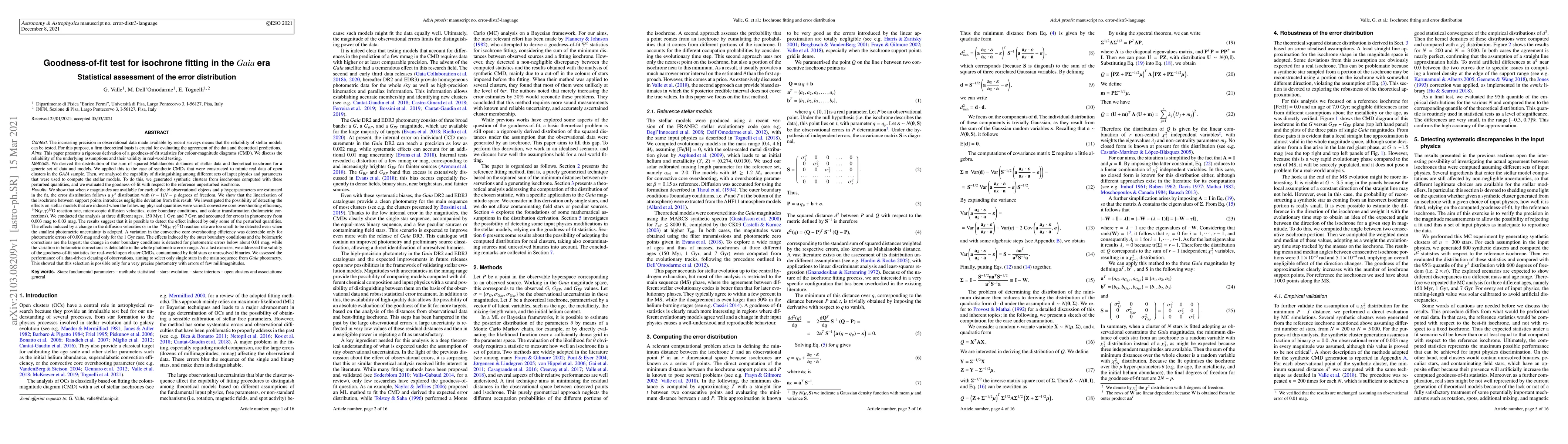 This paper develops a goodness-of-fit statistic for assessing isochrone models against colour-magnitude diagrams (CMD) in the Gaia era, showing that the error distribution follows a $\chi^2$ distribution. It demonstrates the ability to detect specific stellar model variations, such as convective core overshooting efficiency, but not all perturbations, and validates the method for real open cluster CMDs.