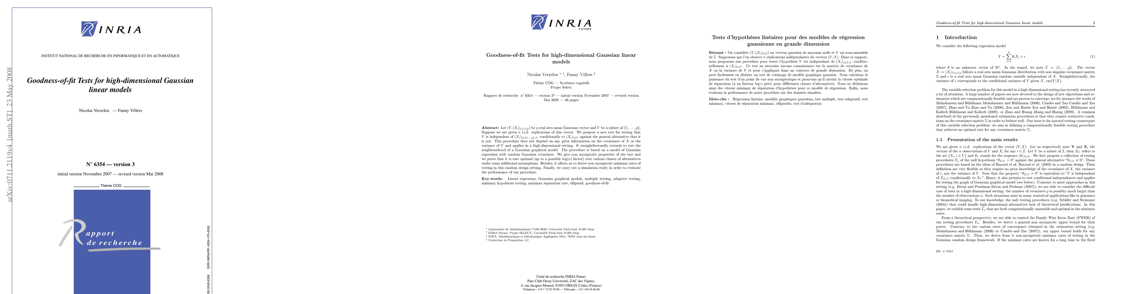 A new goodness-of-fit test is proposed for high-dimensional Gaussian linear models to determine if a zero-mean Gaussian vector Y is independent of its covariates X, without requiring prior information on their covariance or variance.