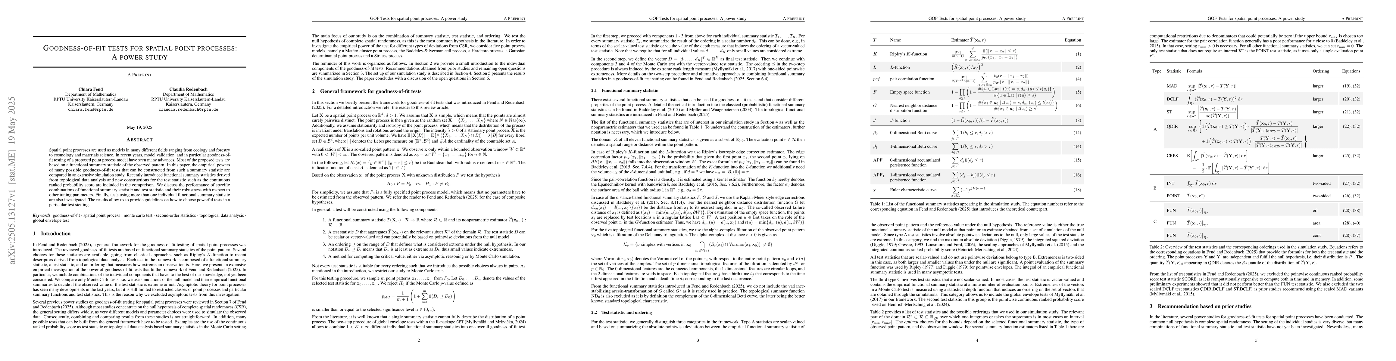 The paper presents a comparative analysis of multiple goodness-of-fit tests, incorporating novel summary statistics and test statistics, contributing to the advancement of model validation techniques for spatial point processes.