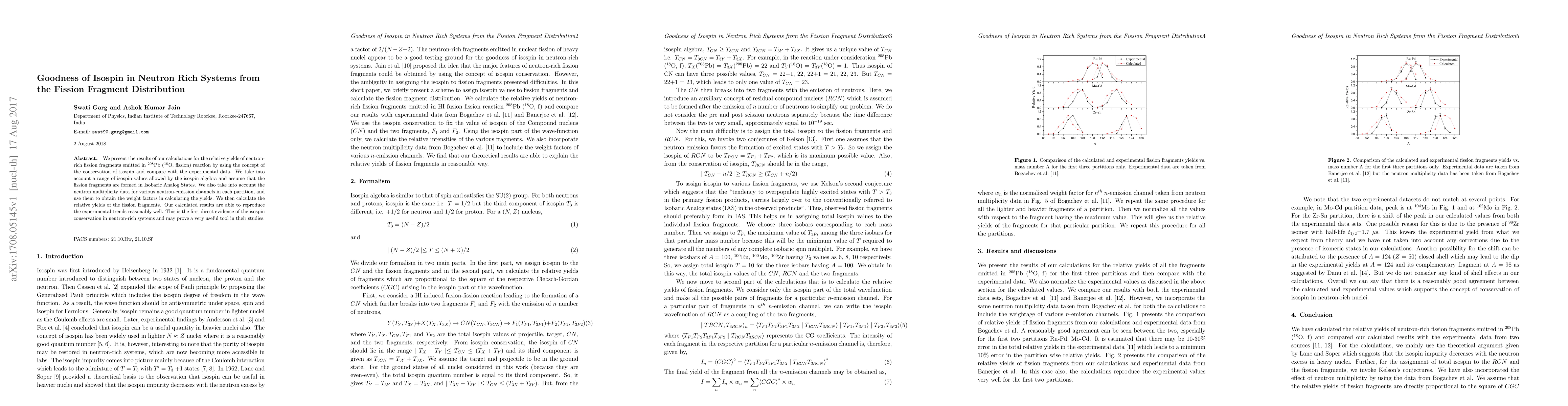 This paper investigates the conservation of isospin in neutron-rich fission fragments from $^{208}$Pb using theoretical calculations and compares them to experimental data. The results show good agreement and provide the first direct evidence of isospin conservation in such systems, offering a valuable tool for future studies.