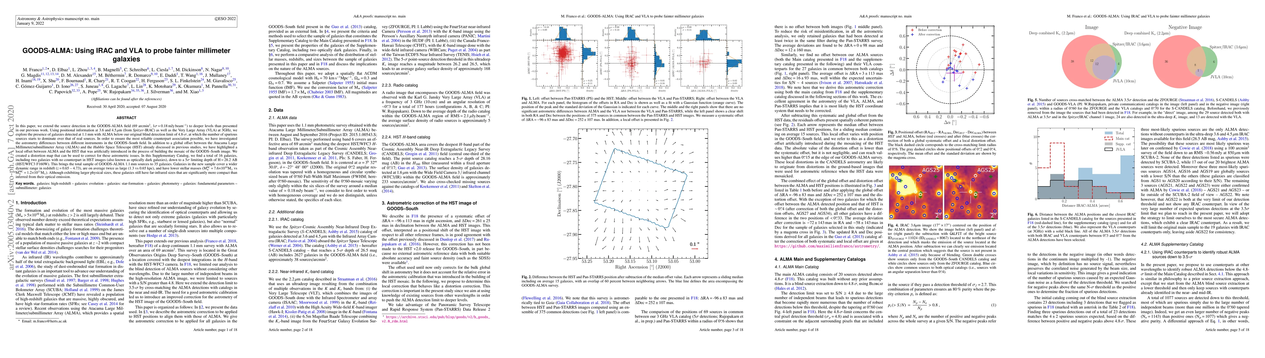 This paper extends the GOODS-ALMA survey to deeper millimeter galaxy detections, identifying 16 additional galaxies, including 2 optically-dark galaxies, using IRAC and VLA data. The new sample exhibits a wider redshift range and lower stellar mass compared to previous findings, highlighting significant astrometric distortions in the HST image mosaic.