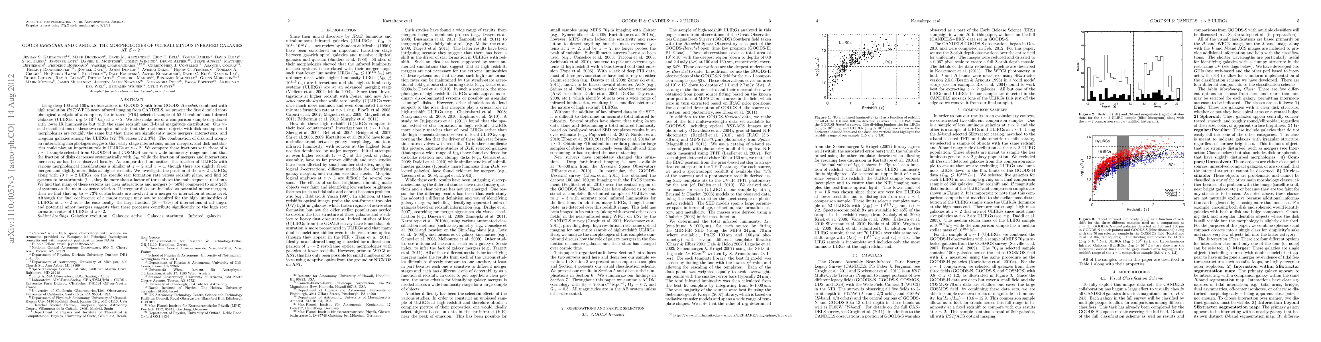 This study combines GOODS-Herschel and CANDELS data to analyze the morphologies of 52 ultraluminous infrared galaxies (ULIRGs) at z~2, finding that while disk and spheroid morphologies are common, ULIRGs exhibit significantly more mergers and interactions compared to a control sample. The research suggests that early-stage interactions and minor mergers may play a role in the high star formation rates of ULIRGs at z~2, with a large fraction involved in mergers or interactions.