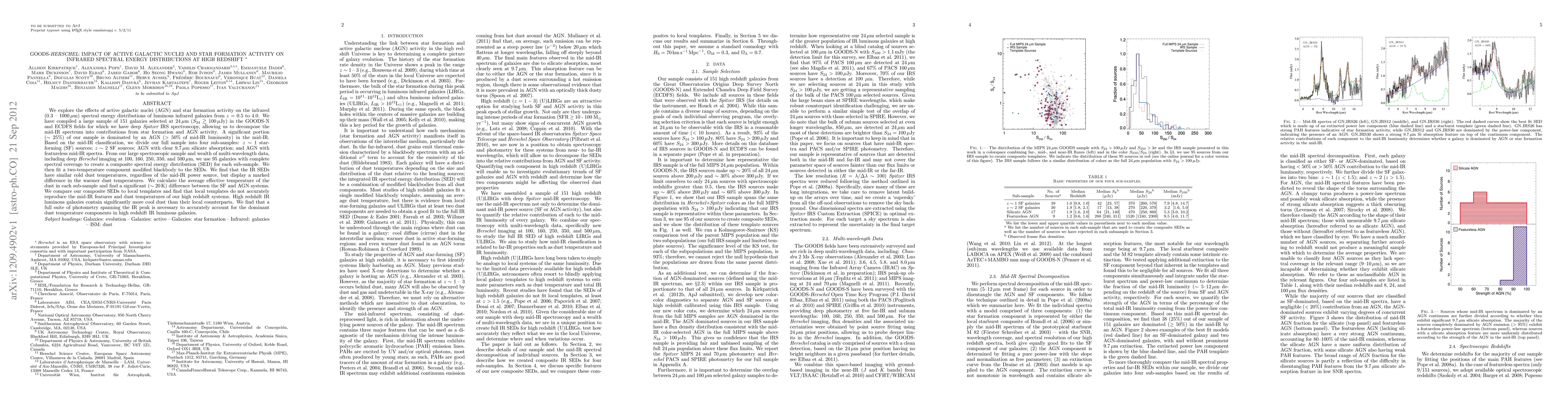 This paper investigates the influence of active galactic nuclei (AGN) and star formation on the infrared spectral energy distributions of luminous infrared galaxies at high redshifts (z = 0.5 to 4.0). It finds significant differences in the warmer dust temperatures between star-forming and AGN-dominated galaxies, with AGN systems having higher temperatures by about 20 K.
