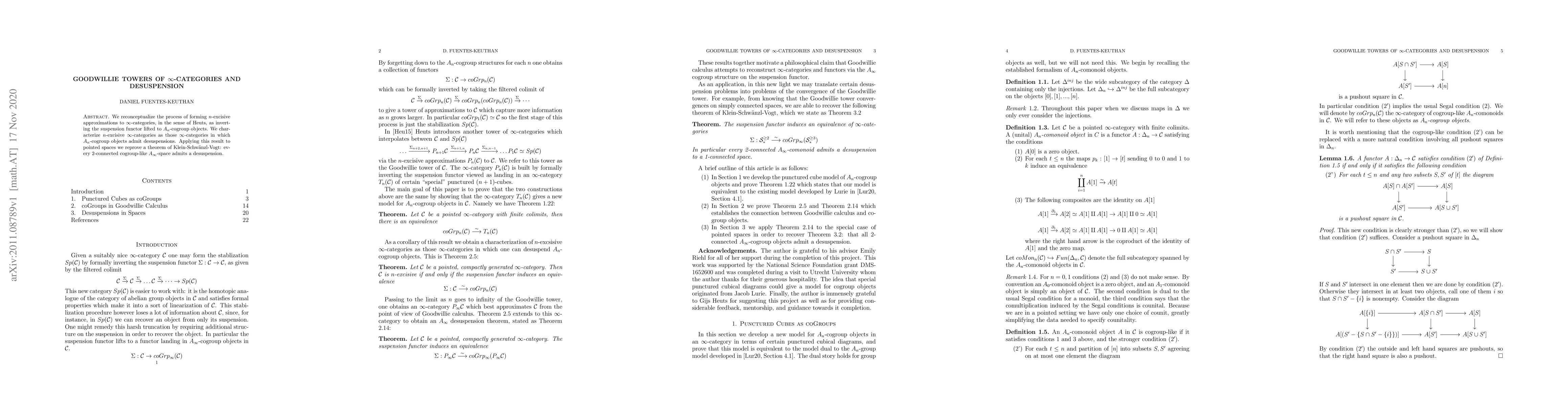 This paper reframes the construction of $n$-excisive approximations for $\infty$-categories by leveraging the desuspension of $A_n$-cogroup objects, ultimately showing that $n$-excisive $\infty$-categories are those where such cogroup objects can be desuspended. The result is applied to prove that every 2-connected cogroup-like $A_\infty$-space can be desuspended.