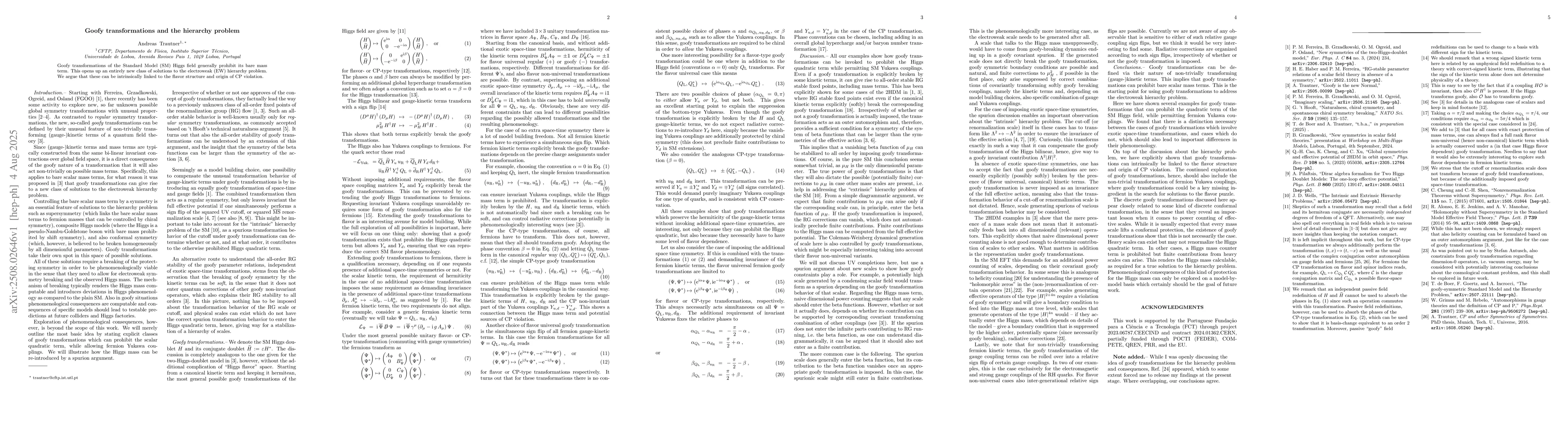 The paper introduces and analyzes goofy transformations as a tool to address the hierarchy problem, demonstrating their potential to prohibit the Higgs quadratic term while preserving SM Yukawa couplings and linking to flavor structure and CP violation.