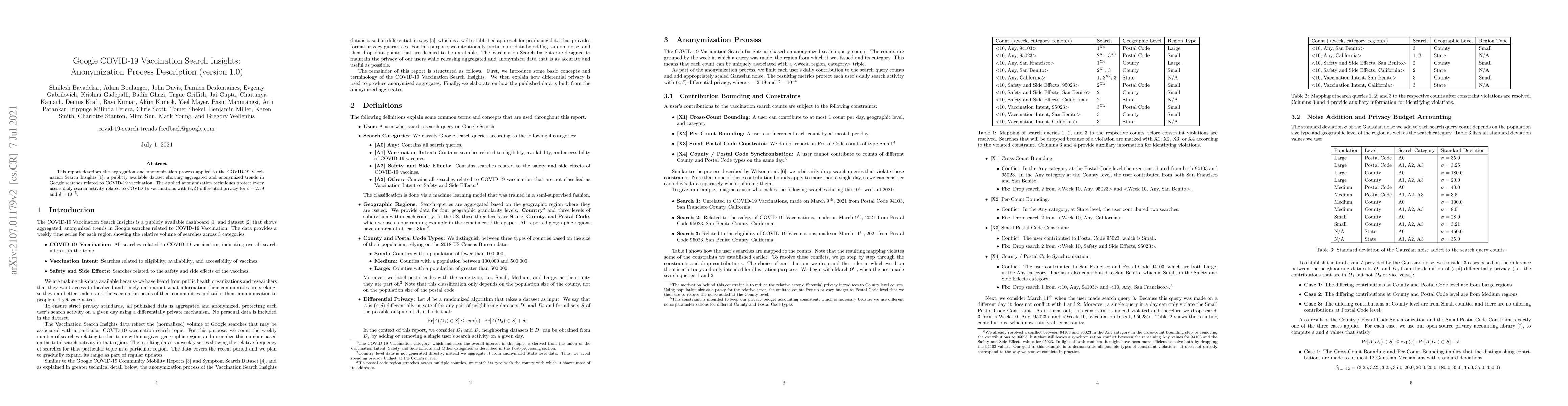 This report describes the aggregation and anonymization process applied to the COVID-19 Vaccination Search Insights (published at http://goo.gle/covid19vaccinationinsights), a publicly available dataset showing aggregated and anonymized trends in Google searches related to COVID-19 vaccination. The applied anonymization techniques protect every user's daily search activity related to COVID-19 vaccinations with $(\varepsilon, \delta)$-differential privacy for $\varepsilon = 2.19$ and $\delta = 10^{-5}$.