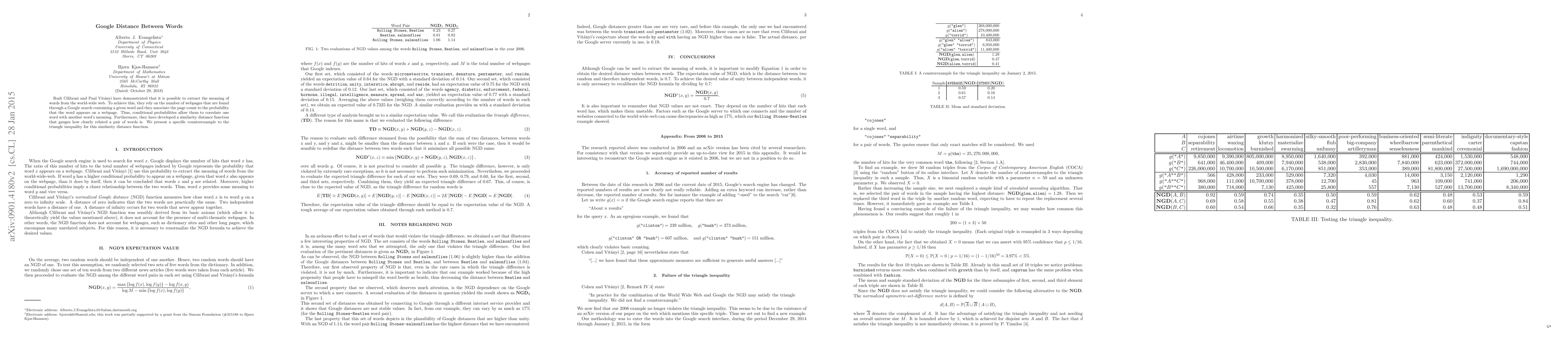 Cilibrasi and Vitanyi have demonstrated that it is possible to extract the meaning of words from the world-wide web. To achieve this, they rely on the number of webpages that are found through a Google search containing a given word and they associate the page count to the probability that the word appears on a webpage. Thus, conditional probabilities allow them to correlate one word with another word's meaning. Furthermore, they have developed a similarity distance function that gauges how closely related a pair of words is. We present a specific counterexample to the triangle inequality for this similarity distance function.