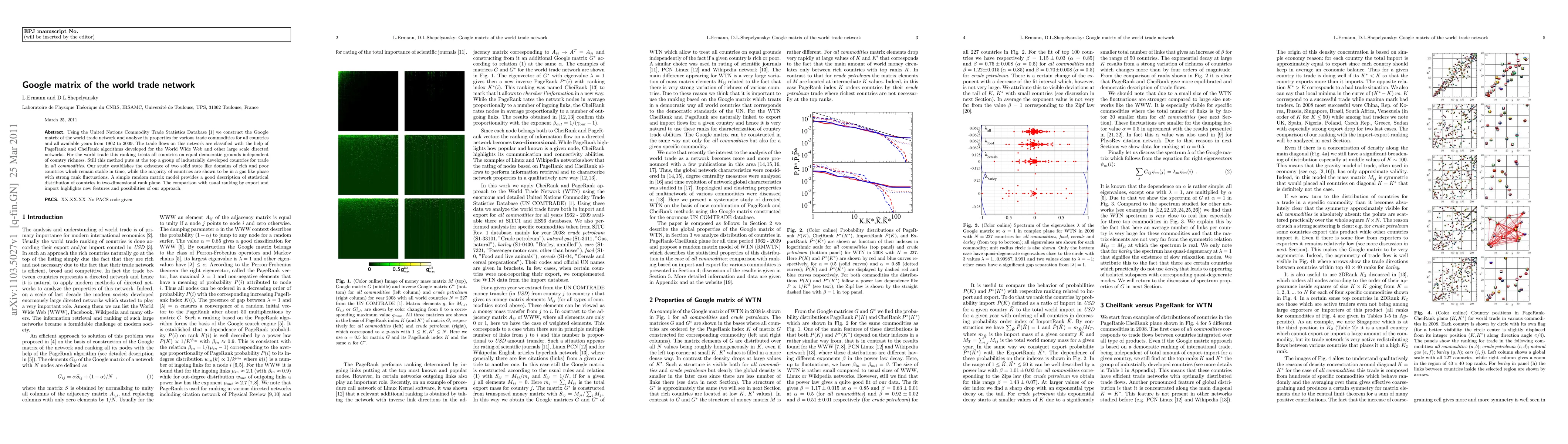 Using the United Nations Commodity Trade Statistics Database [http://comtrade.un.org/db/] we construct the Google matrix of the world trade network and analyze its properties for various trade commodities for all countries and all available years from 1962 to 2009. The trade flows on this network are classified with the help of PageRank and CheiRank algorithms developed for the World Wide Web and other large scale directed networks. For the world trade this ranking treats all countries on equal democratic grounds independent of country richness. Still this method puts at the top a group of industrially developed countries for trade in {\it all commodities}. Our study establishes the existence of two solid state like domains of rich and poor countries which remain stable in time, while the majority of countries are shown to be in a gas like phase with strong rank fluctuations. A simple random matrix model provides a good description of statistical distribution of countries in two-dimensional rank plane. The comparison with usual ranking by export and import highlights new features and possibilities of our approach.