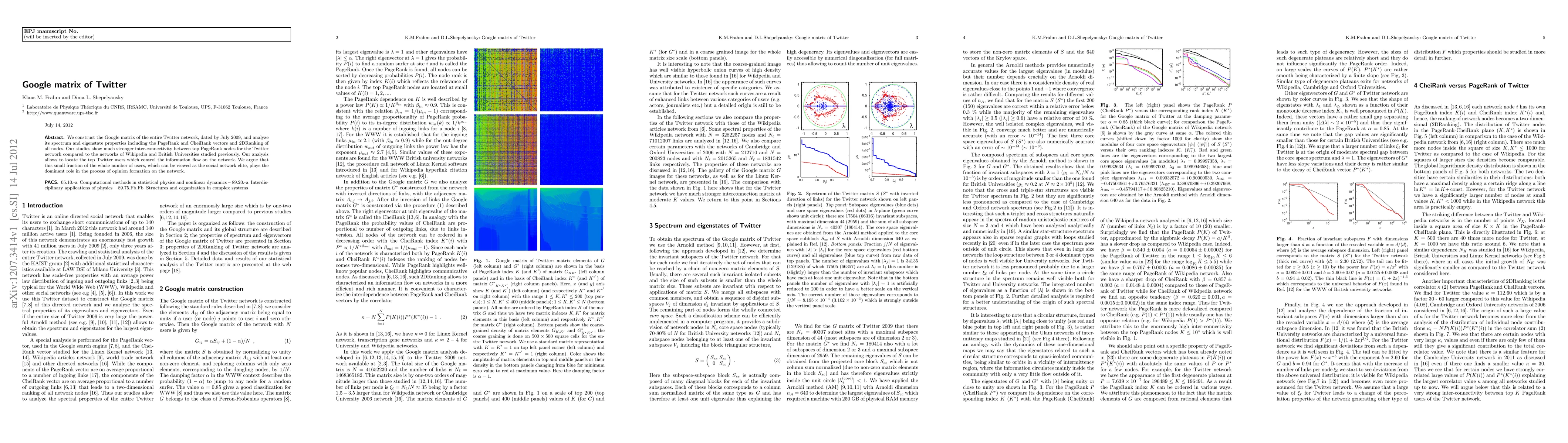 The study analyzes Twitter's network structure and finds a small elite group of users controlling information flow, with stronger inter-connectivity between top PageRank nodes than in previously studied networks.