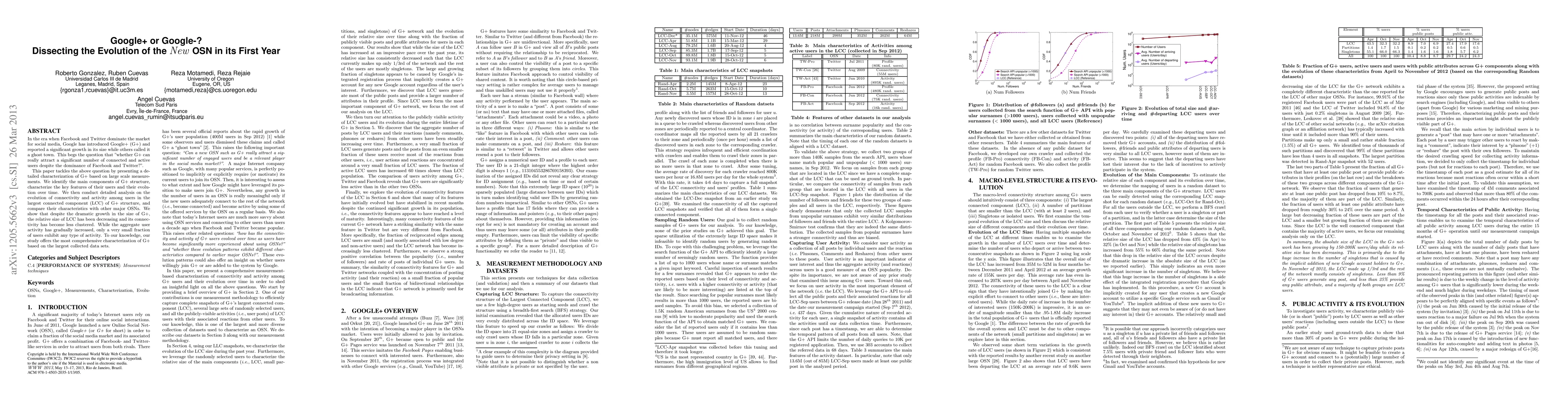 In the era when Facebook and Twitter dominate the market for social media, Google has introduced Google+ (G+) and reported a significant growth in its size while others called it a ghost town. This begs the question that "whether G+ can really attract a significant number of connected and active users despite the dominance of Facebook and Twitter?". This paper tackles the above question by presenting a detailed characterization of G+ based on large scale measurements. We identify the main components of G+ structure, characterize the key features of their users and their evolution over time. We then conduct detailed analysis on the evolution of connectivity and activity among users in the largest connected component (LCC) of G+ structure, and compare their characteristics with other major OSNs. We show that despite the dramatic growth in the size of G+, the relative size of LCC has been decreasing and its connectivity has become less clustered. While the aggregate user activity has gradually increased, only a very small fraction of users exhibit any type of activity. To our knowledge, our study offers the most comprehensive characterization of G+ based on the largest collected data sets.