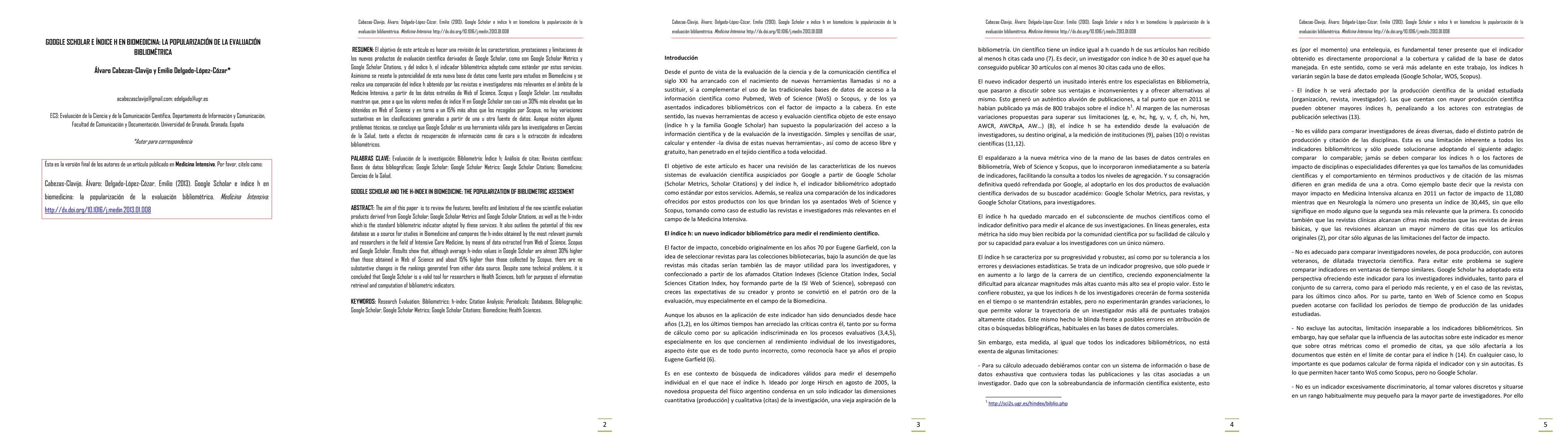 This paper reviews Google Scholar's bibliometric tools, including Google Scholar Metrics and Citations, and evaluates the h-index's application in Biomedicine. It finds that while Google Scholar yields higher h-index values, it maintains comparable rankings to Web of Science and Scopus, affirming its utility in Health Sciences research.