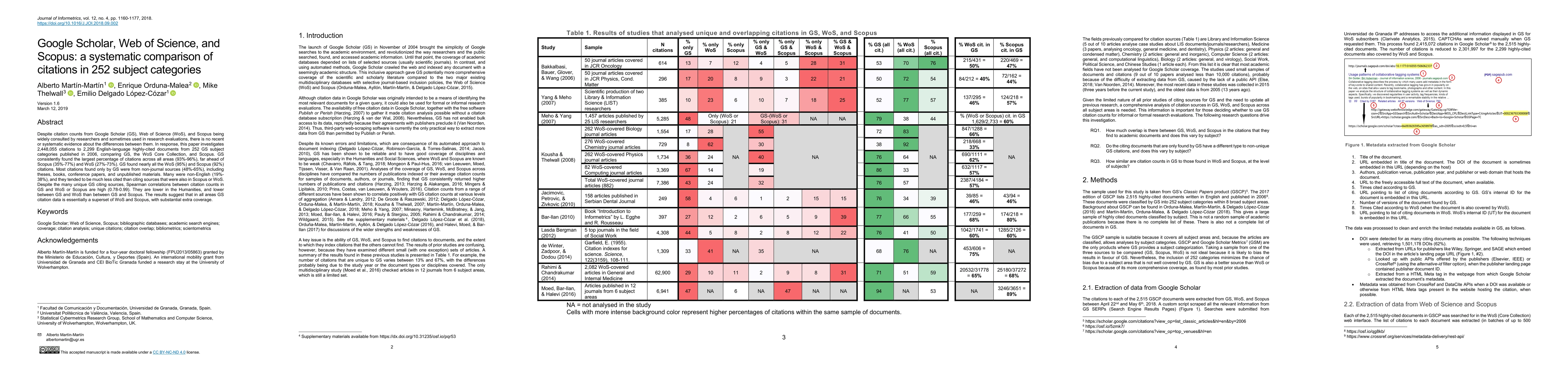 This study systematically compares citation counts from Google Scholar (GS), Web of Science (WoS), and Scopus across 252 subject categories, revealing that GS consistently identifies the largest percentage of citations (93%-96%), significantly more than Scopus (35%-77%) and WoS (27%-73%). GS's extensive coverage includes many non-journal sources and non-English materials, though these are less cited. Despite this, high correlation coefficients (0.78-0.99) indicate strong relationships between GS and the other databases.