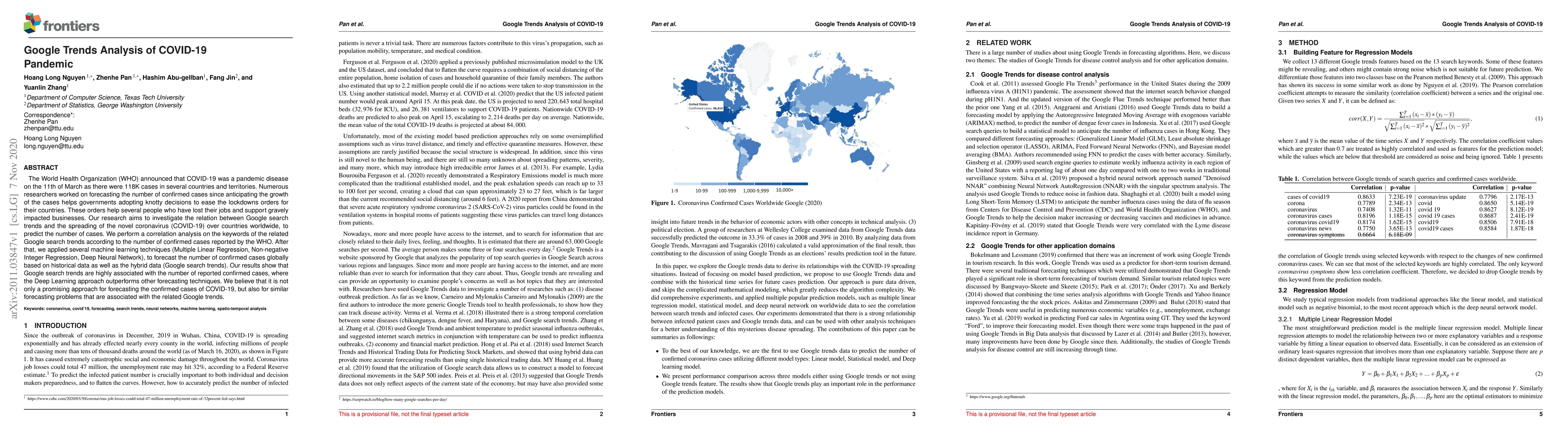 This research investigates the correlation between Google search trends and the spread of COVID-19, using machine learning techniques to forecast confirmed cases. The study finds that Google search trends are strongly associated with case numbers, and that Deep Learning models outperform other methods in predictions.