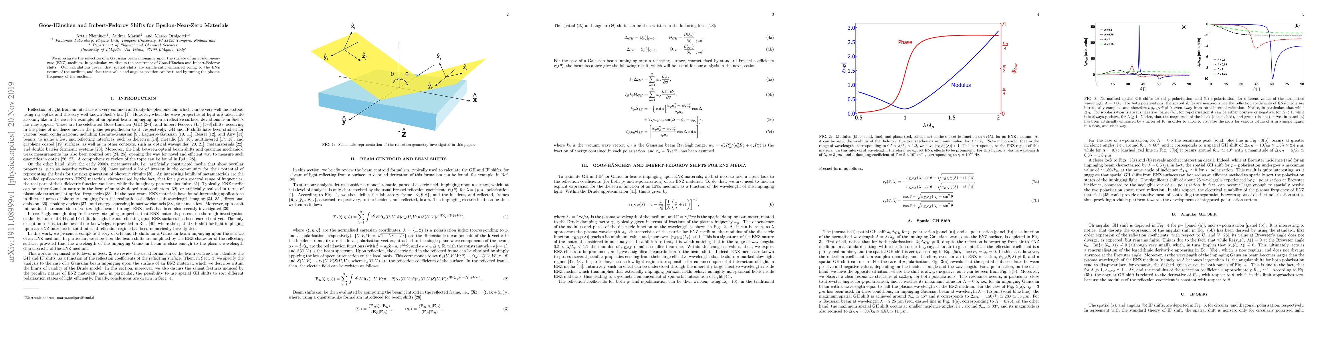 This paper explores the reflection of Gaussian beams on epsilon-near-zero materials, revealing significant enhancements in Goos-Hänchen and Imbert-Fedorov shifts due to the ENZ properties. The shifts' magnitude and direction are tunable by adjusting the medium's plasma frequency.