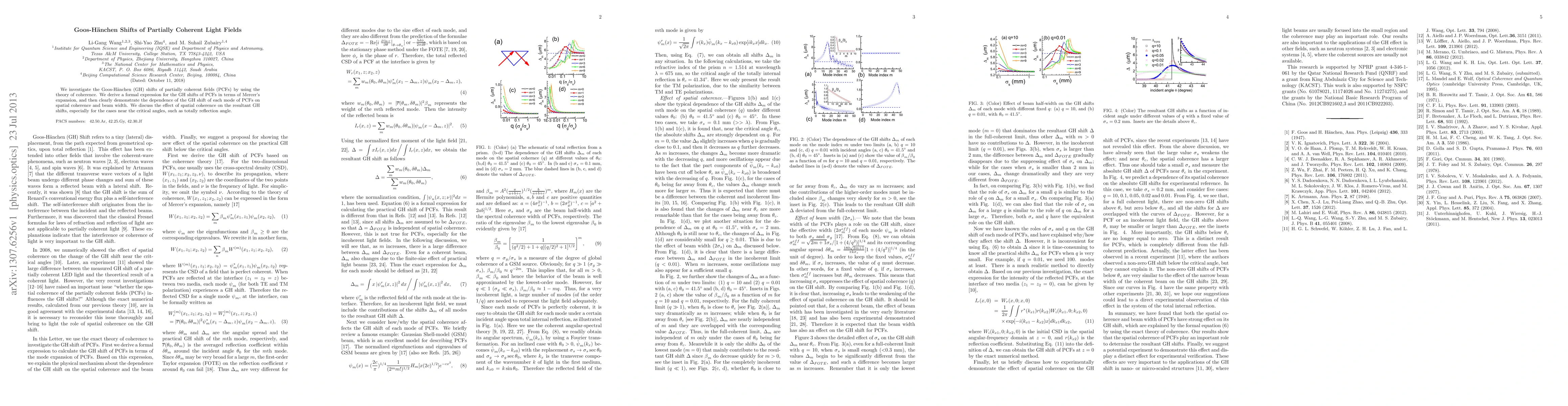 This paper derives a formal expression for Goos-Hänchen shifts of partially coherent light fields using coherence theory and Mercer's expansion, highlighting the dependence of these shifts on spatial coherence and beam width, particularly near critical angles like total reflection.