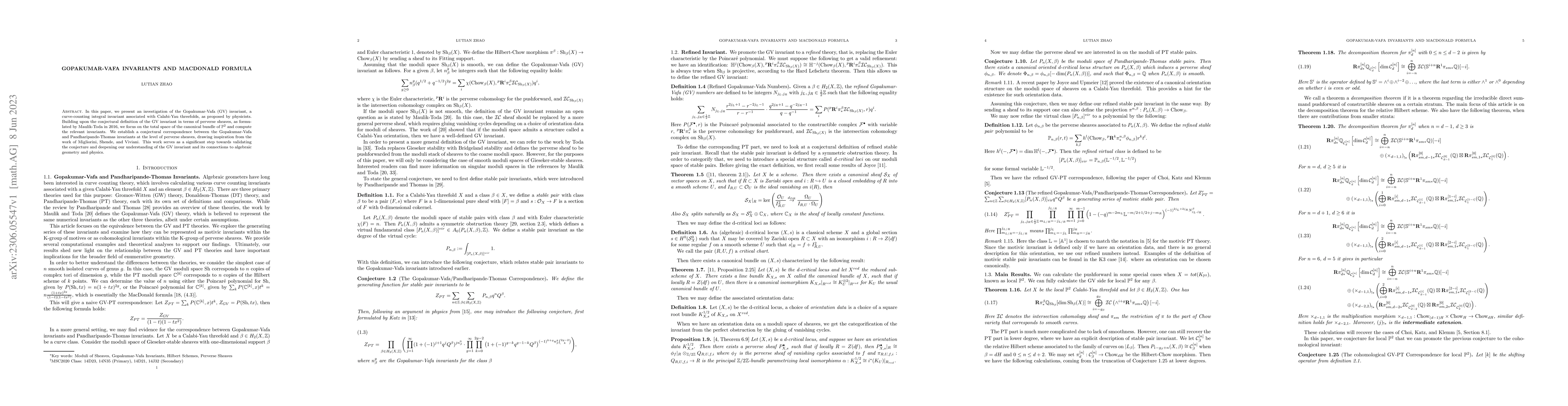 This paper investigates the Gopakumar-Vafa invariants related to Calabi-Yau threefolds, computing these invariants for the canonical bundle of $\mathbb{P}^2$. It establishes a conjectured connection between the GV and Pandharipande-Thomas invariants, advancing the understanding of their algebraic geometry and physics links.