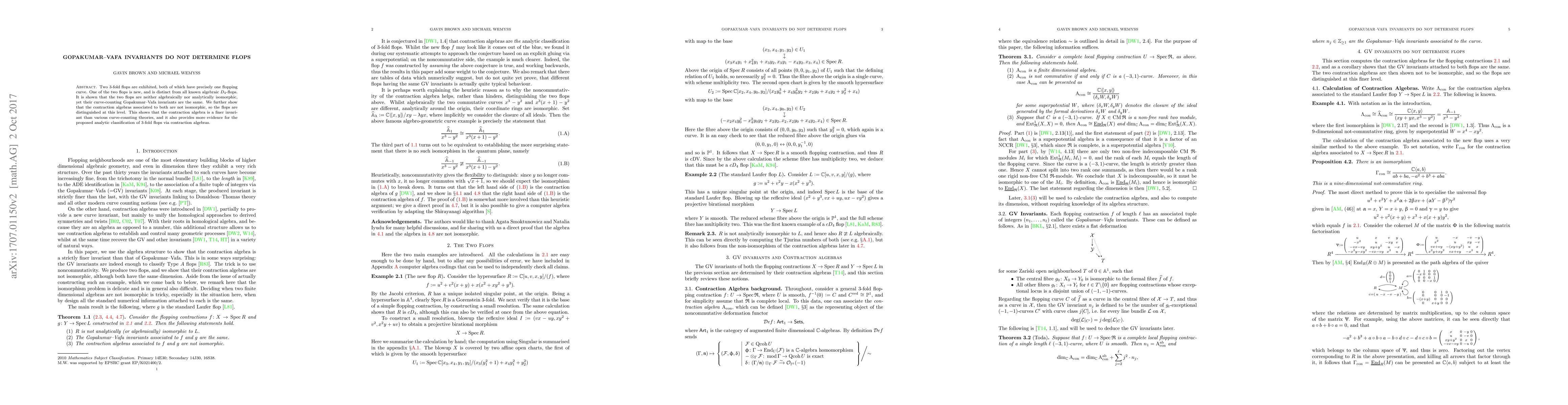 Two new distinct 3-fold flops are shown to have identical Gopakumar-Vafa invariants, highlighting the limitations of curve-counting theories and reinforcing the importance of contraction algebras as a finer invariant for classifying these topological defects.