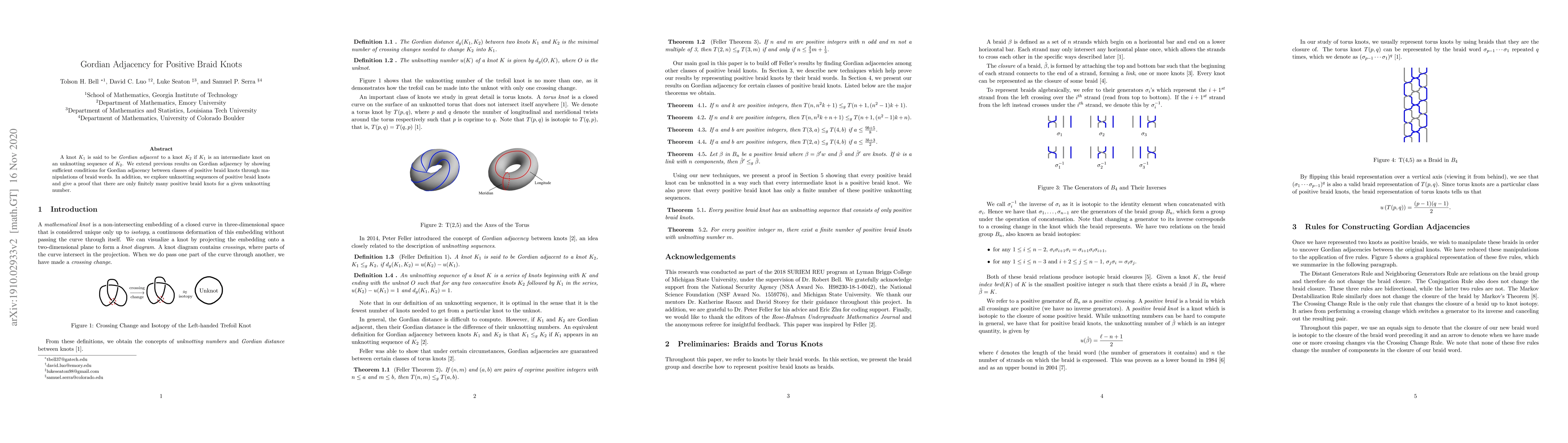 This research contributes to the understanding of knot theory, specifically Gordian adjacency, and has implications for the study of unknotting sequences and positive braid knots.