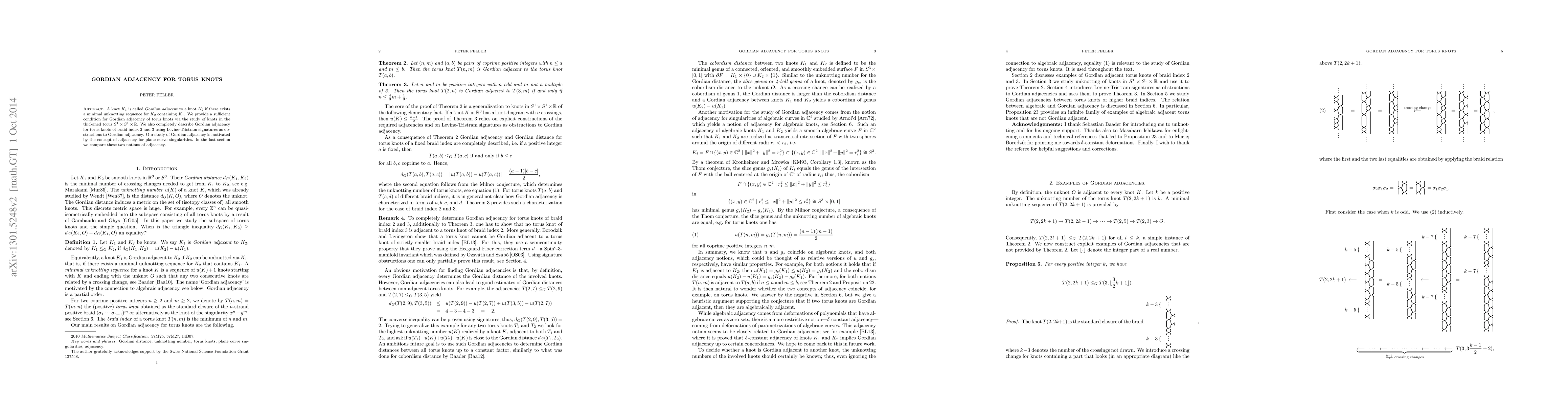 This paper explores Gordian adjacency for torus knots, providing a sufficient condition for such adjacency through the study of knots in thickened torus. It specifically details Gordian adjacency for torus knots of index 2 and 3 using Levine-Tristram signatures, and compares these findings to adjacency in plane curve singularities.